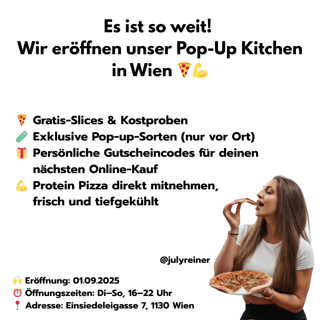 Fragen? Klick auf den Chat oder schreib uns eine Mail unter office@dieproteinpizza.com – wir sind für dich da.